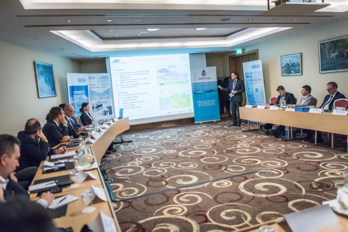 związane z potrzebą gromadzenia danych opadowych, a także implementacji w praktyce nowych narzędzi modelowania i projektowania. Przedstawione zostały tutaj rozwiązania firmy OTT, które mogą być skutecznie wykorzystywane do monitorowania opadów dla różnych aspektów hydrologii miejskiej. Pan Marcus Meckelmann (OTT) przedstawił także kilka referencji odnośnie wykorzystania nowoczesnych elektronicznych deszczomierzy wagowych i disdrometrów laserowych w Polsce i na świecie. Podczas tej części spotkania przedstawione zostały również produkty firmy Bentley, a więc światowego lidera w produkcji oprogramowania do wspomagania projektowania, w tym przede wszystkim lidera w obszarze specjalistycznego oprogramowania dedykowanego projektowaniu i modelowaniu systemów odwadniających. Przedstawiciel firmy, Pan Slavco Velickov, zaprezentował kilka przykładów wykorzystania oprogramowania Bentley w postaci aplikacji takich jak SewerGEMS i CivilStorm do opracowywania Masterplanów, czyli koncepcji odprowadzania wód opadowych dla dużych miast . Został przy tym poruszony nadal często spotykany problem użycia archaicznych metod obliczeniowych, niedopuszczalnych już przez normę europejską PN-EN 752:2008 do obliczeń sprawdzających dużych systemów odwodnienia, w miejsce specjalistycznego oprogramowania do modelowania.