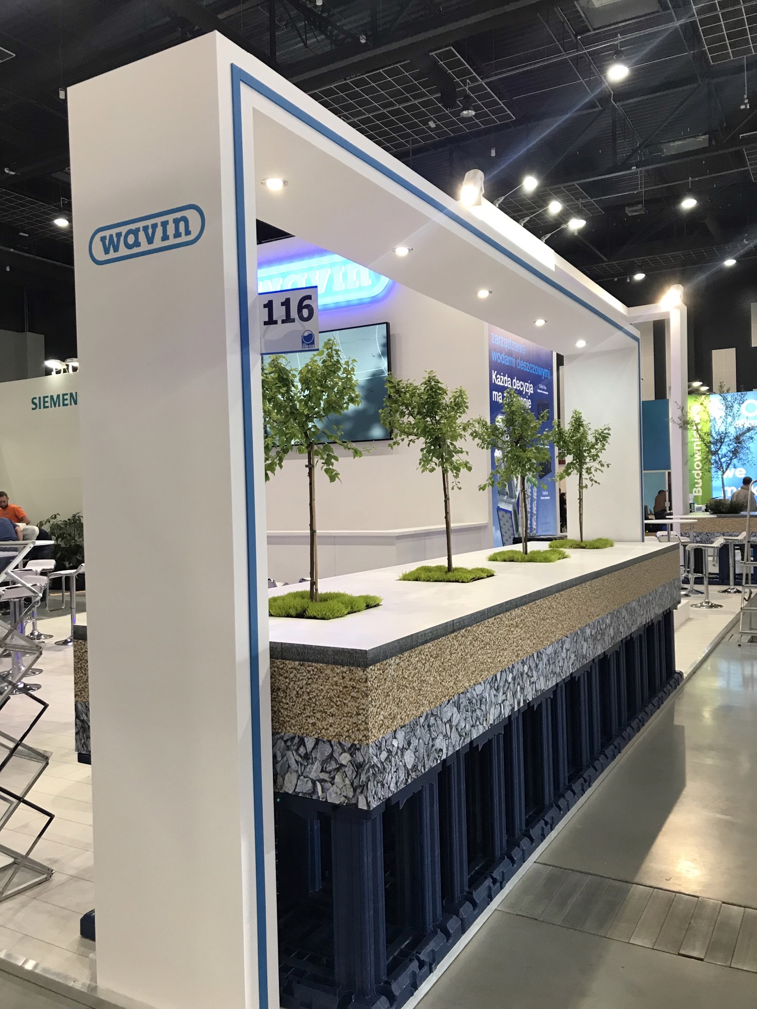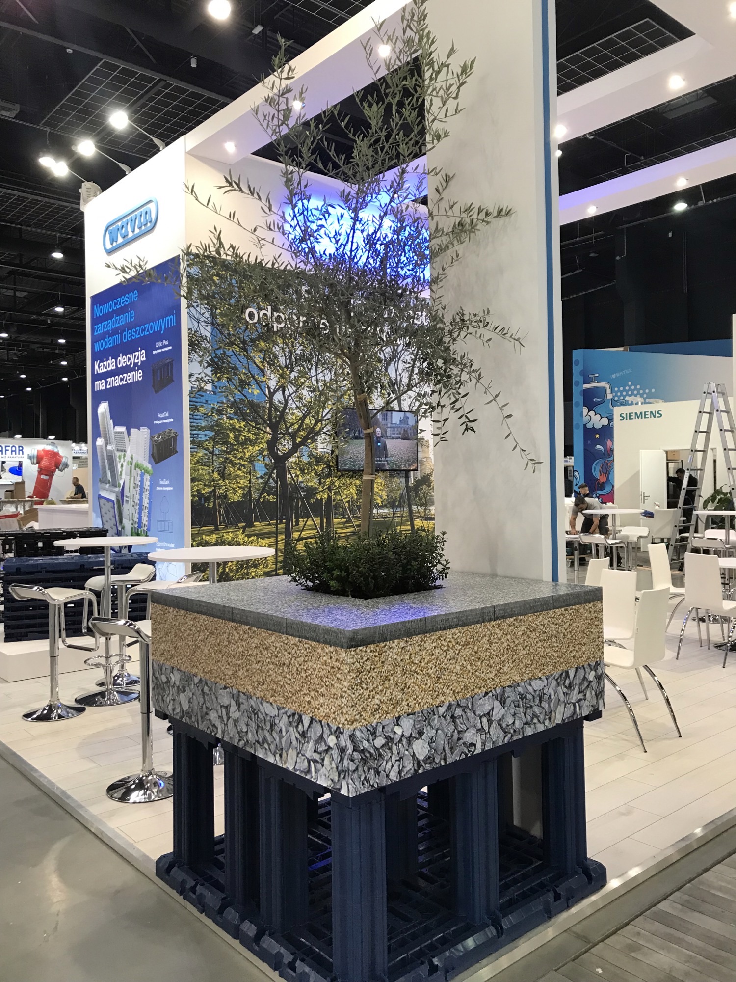 Na tegoroczną, XXVIII, edycję Międzynarodowych Targów Maszyn i Urządzeń dla Wodociągów i Kanalizacji – WOD-KAN 2022 Wavin Polska zbudował nietypowe stoisko, na którym wzrok zwiedzających przyciągają prawdziwe drzewa, posadzone w TreeTankach.